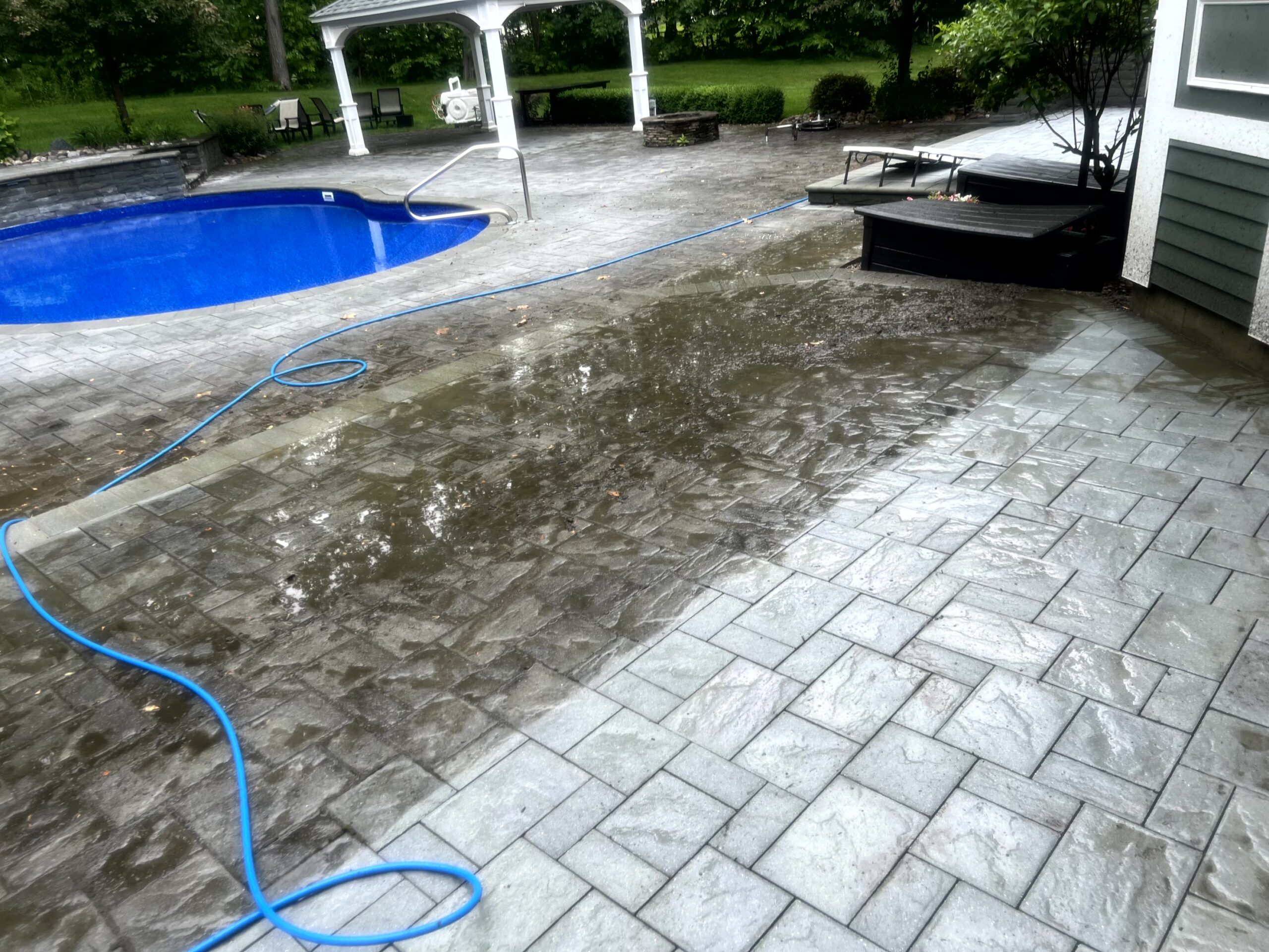 Pressure wash using hot water and a state-of-the-art surface cleaner. Old poly sand is removed from paver joints, replaced with new sand, and sealed for long-lasting protection. Helps prevent cracking and restores your outdoor space.